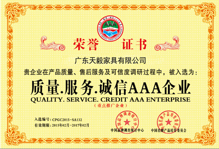 ??公司已經(jīng)國(guó)家質(zhì)量工商單位審核體系認(rèn)證。我公司系廣州家具協(xié)會(huì)單位,在生產(chǎn)內(nèi)部各個(gè)環(huán)節(jié)設(shè)立了檢驗(yàn)關(guān)口,從原材料的進(jìn)庫到產(chǎn)品的出倉,實(shí)行嚴(yán)格的檢驗(yàn),以達(dá)到質(zhì)量最優(yōu)...